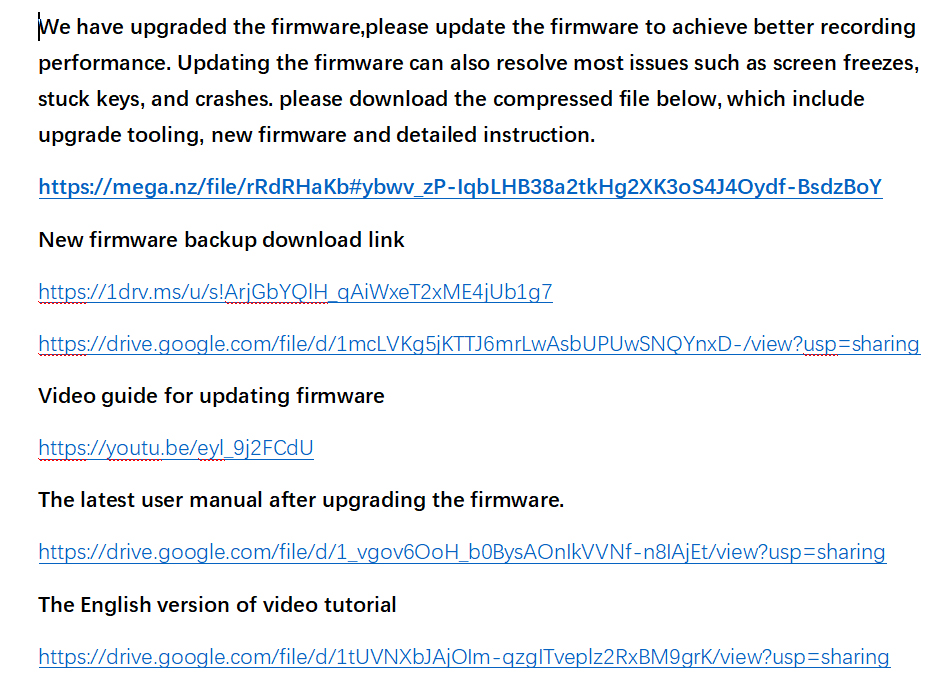 Google Link For Downloading The Latest User Manual, Upgrade Firmware Package And Video Tutorials